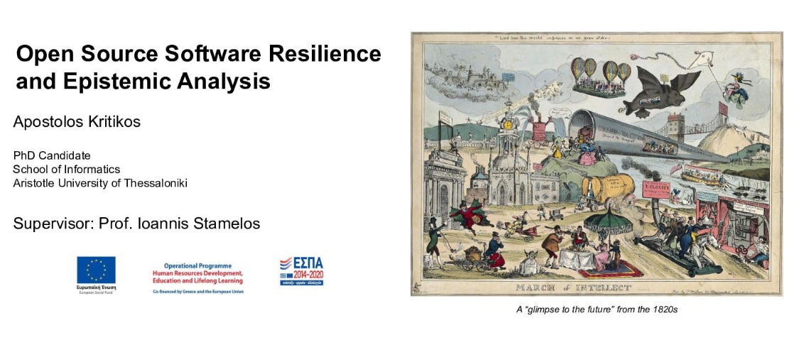 During my doctoral research, I investigated the concept of Software Resilience in the domain of Software Engineering and more specifically in the Open Source Software realm. The research is reflected in a Resilience Framework for Open Source Software Assessment, published by Wiley to the Journal of Software: Evolution & Processes.
