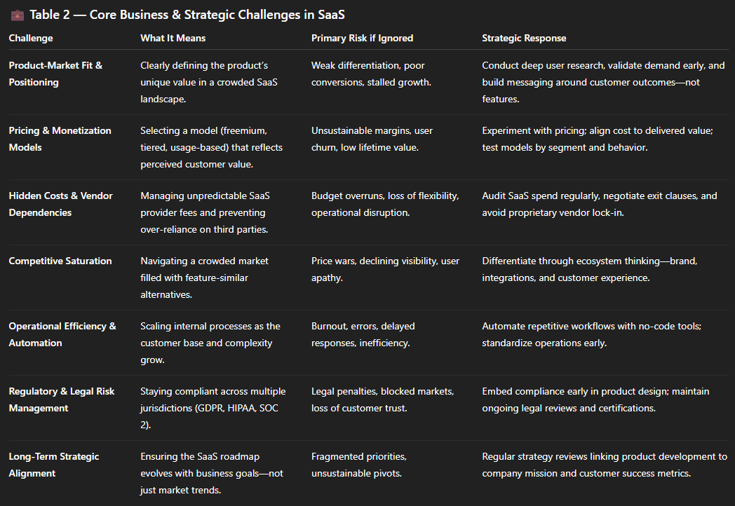 Beyond revenue design, SaaS businesses must navigate hidden costs. There are vendor dependencies, API fees, and compliance overheads and more. Meanwhile, the competitive landscape grows noisier every quarter. Winning today is less about adding features and more about building ecosystems that embed your product into customers’ workflows and identities.