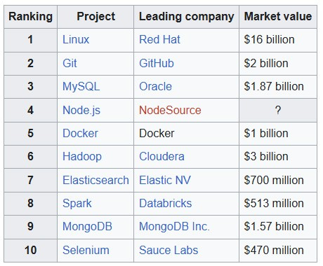 It is worth mentioning that some of the most used software in the planet is built as open source software. And although Open Source Software is being developed as a collaborative approach based (mainly) in voluntary work, the '“valuation” of some open source software projects is also impressive: